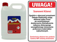 Zgodnie z obecnymi przepisami Zakupu Elektrolitu mogą dokonać tylko Firmy po wcześniejszym dostarczeniu Oświadczenia nabywcy dotyczącego szczegółowego stosowania prekursora materiałów wybuchowych.