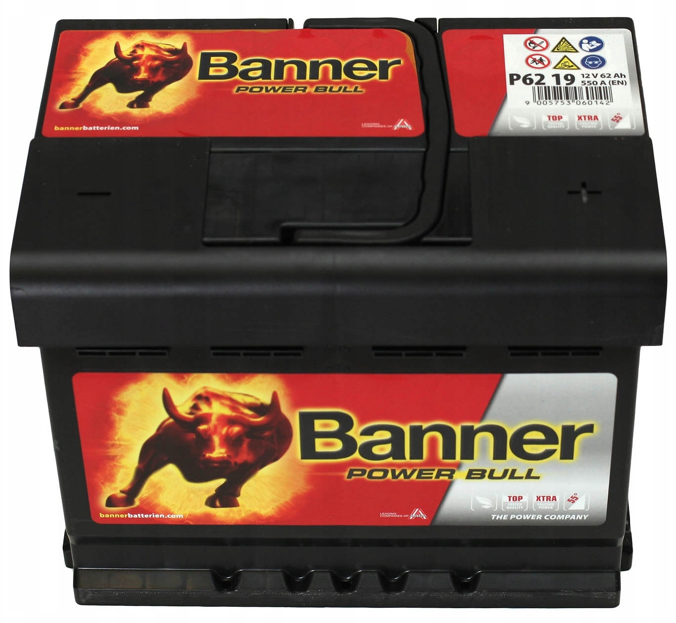 Akumulator BANNER Power Bull 12V 62Ah 550 P6219 to całkowicie bezobsługowy akumulator wysokiej klasy, przeznaczony do współczesnych samochodów osobowych, posiadających zwiększone zapotrzebowanie na energię, niewyposażonych w system Start-Stop.