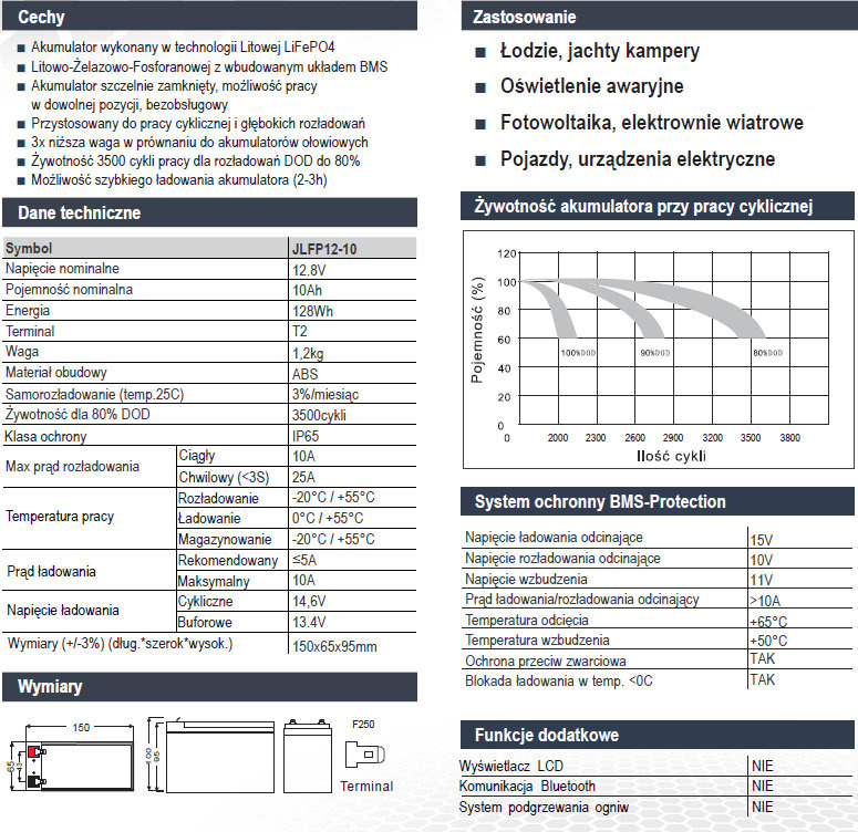 - Żywotność : 3500 cykli pracy (DOD 80%)