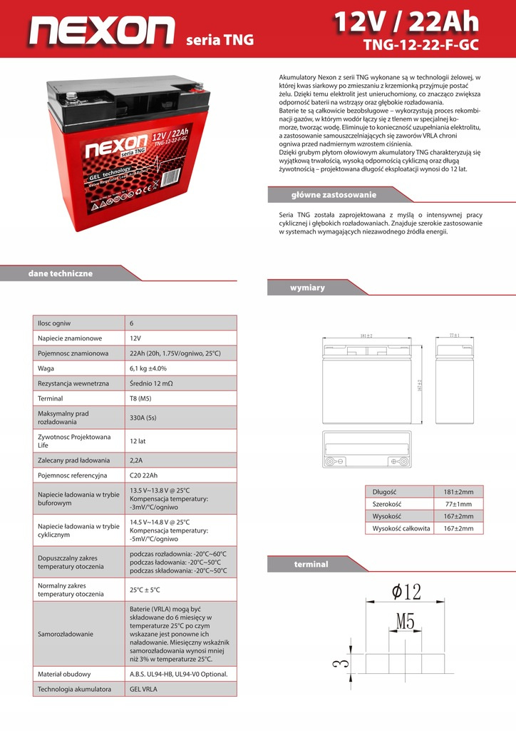 Akumulator Nexon 12V 22Ah GEL TNG-12-22-F-GC