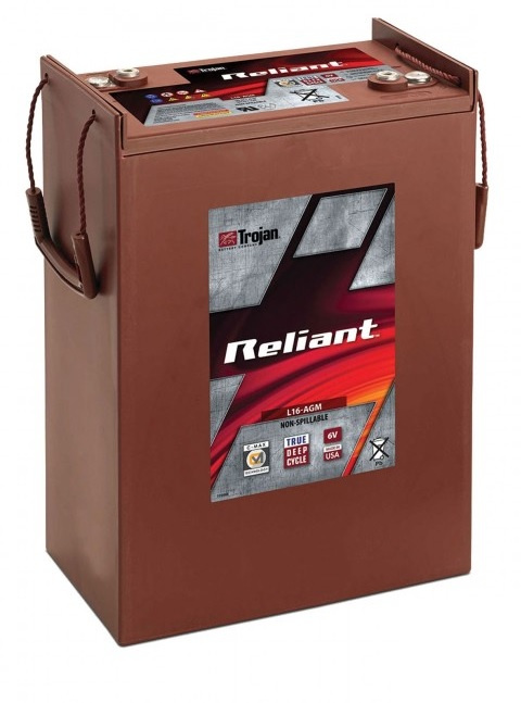 Trojan Reliant™ Line of U.S. - Reliant™ AGM with C-Max Technology™  jako akumulator głębokiego rozładowania w technologii Absorbed Glass Mat (AGM) z zastosowaniem w maszynach czyszczących, podnośnikach platformowych, pojazdach elektrycznych typu melex, club car, telekomunikacji, energii odnawialnej. Mogą być stosowane wszędzie tam gdzie przepisy nie pozwalają na użycie akumulatorów z płynnym elektrolitem np. na lotniskach, służbie zdrowia, centrach handlowych, szkołach. Linia Trojan Reliant AGM została stworzona przez inżynierów posiadających wieloletnie doświadczenie w produkcji akumulatorów głębokiego rozładownia.