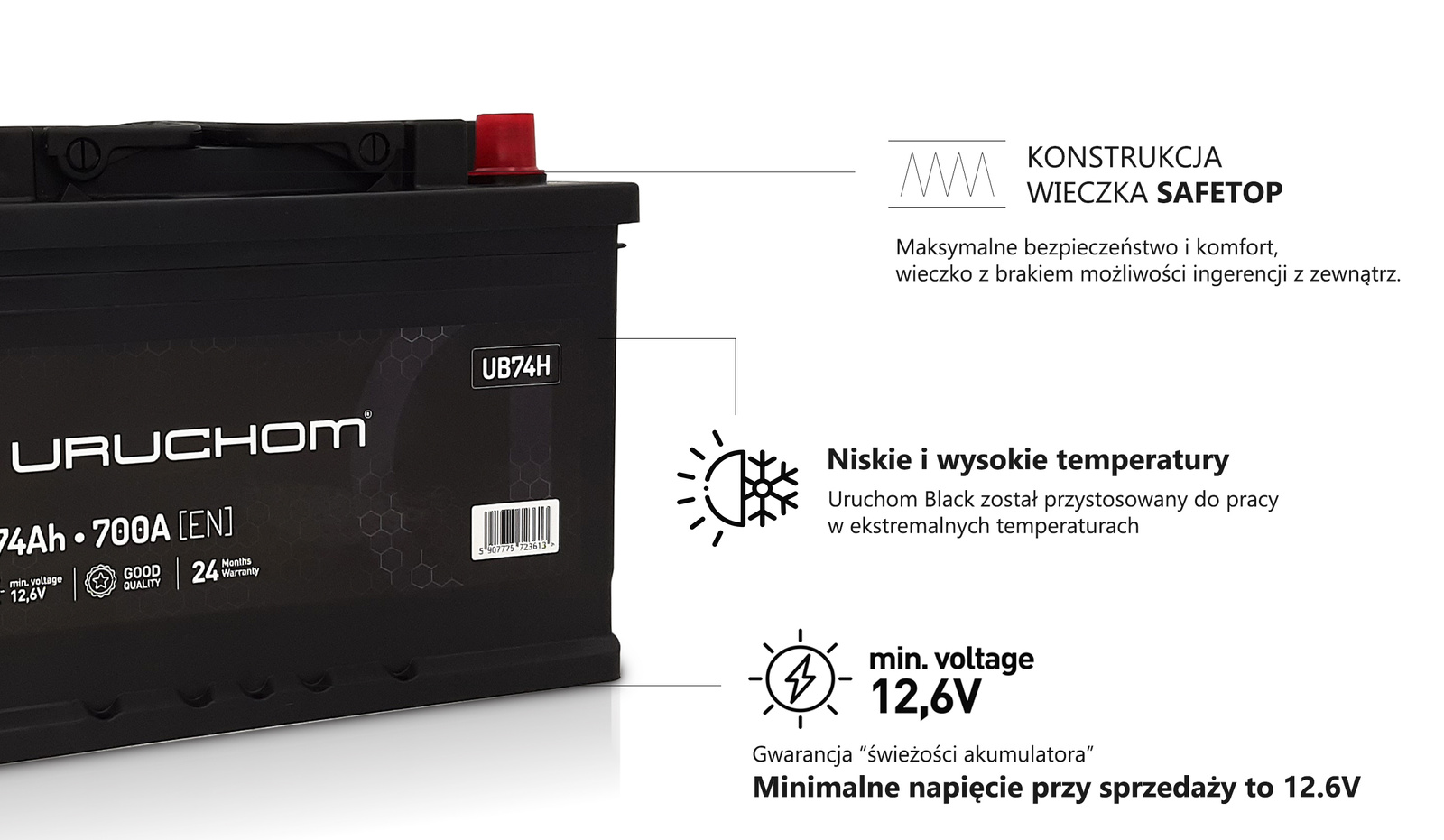 Właściciel pojazdu nie musi ciągle kontrolować baterii, ponieważ seria akumulatorów Uruchom Black została wyposażona w zabezpieczenie przed ewentualnymi wyciekami. Nowa seria akumulatorów spełnia wszystkie wymagane normy, co czyni ją bezpieczną i komfortową podczas pracy. Wszystkie wprowadzone mechanizmy są nie tylko gwarancją skutecznej ochrony samego akumulatora oraz samochodu, ale również przyjaźnie wpływają na ochronę środowiska naturalnego.