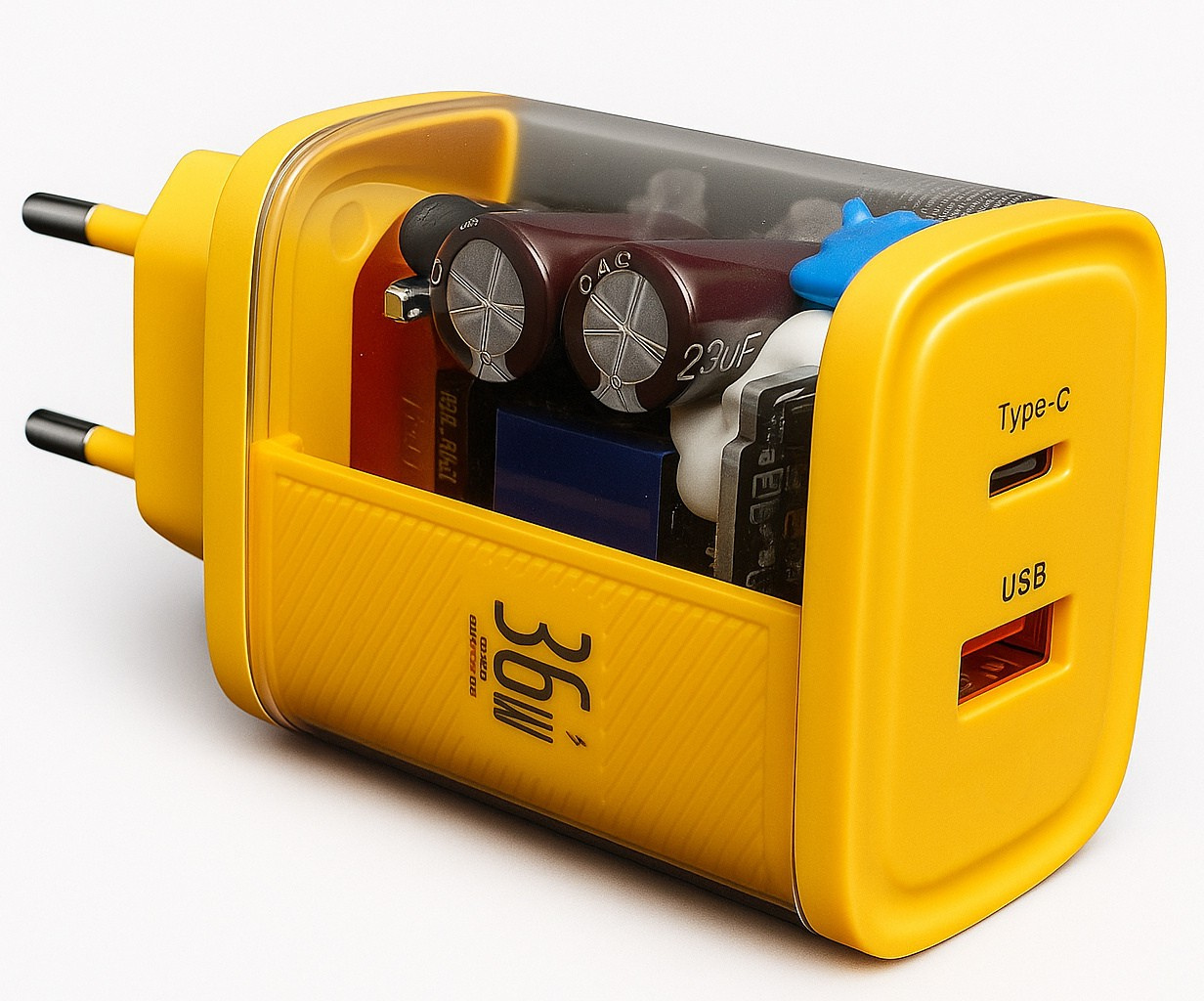 Posiada dwa porty: jeden Type-C oraz jeden USB-A. Jej całkowita moc wyjściowa wynosi 36W.