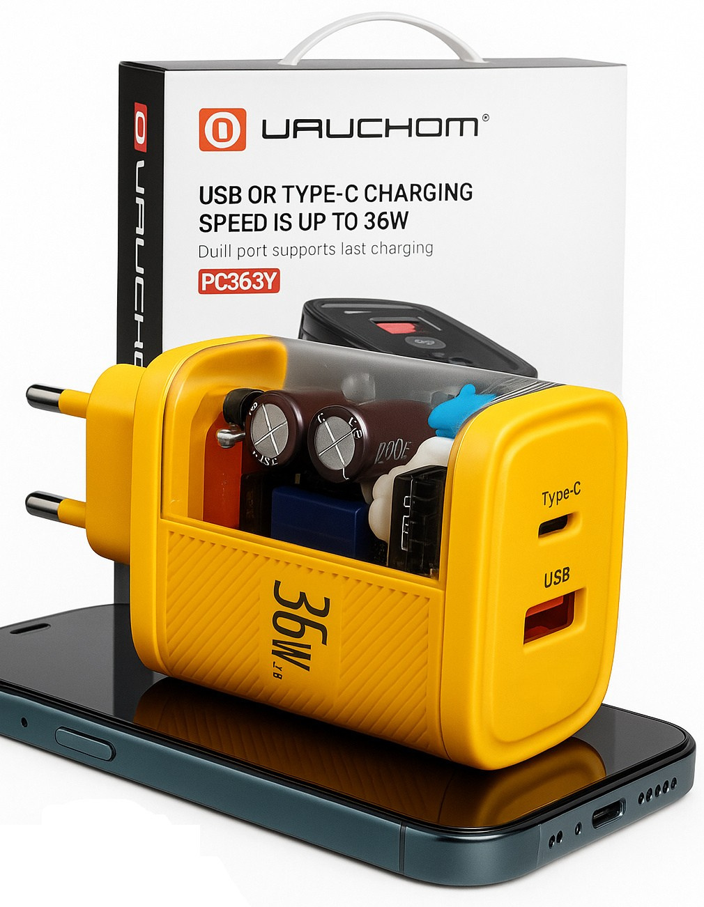 Inteligentna ładowarka sieciowa obsługująca standardy szybkiego ładowania, w tym najbardziej popularne: